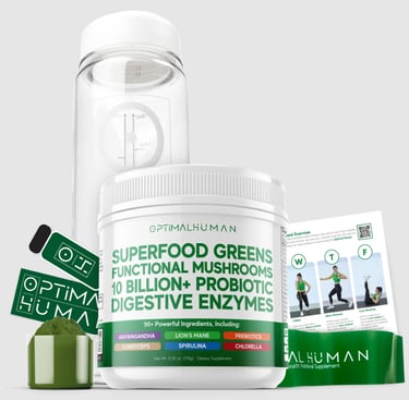 After testing dozens of brands, Optimal Human Superfood Greens stands out as the most complete formula. This doctor-developed blend contains: